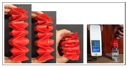 可折疊彈簧的靈感來自一個折疊并扭曲成均勻直角三角形的紙矩形。