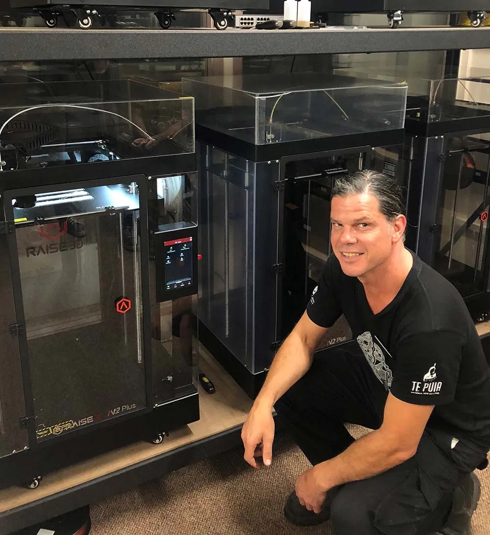圖 | 雕塑設計師斯泰西·戈丁和Raise3D打印機合影 (來源:羅托魯瓦公共藝術信托基金)