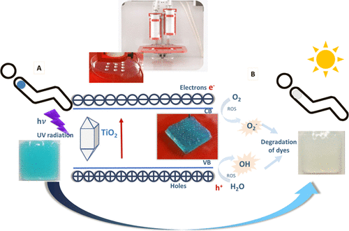 “為了制造傳感器,首先開發了變色水凝膠墨水,從中可以獨立構造3D打印。該油墨包含藻酸鹽,明膠,光敏性二氧化鈦納米粒子和染料(甲基橙,亞甲基藍和孔雀石綠),其中納米粒子用于引發染料的光催化降解,導致染料變色。