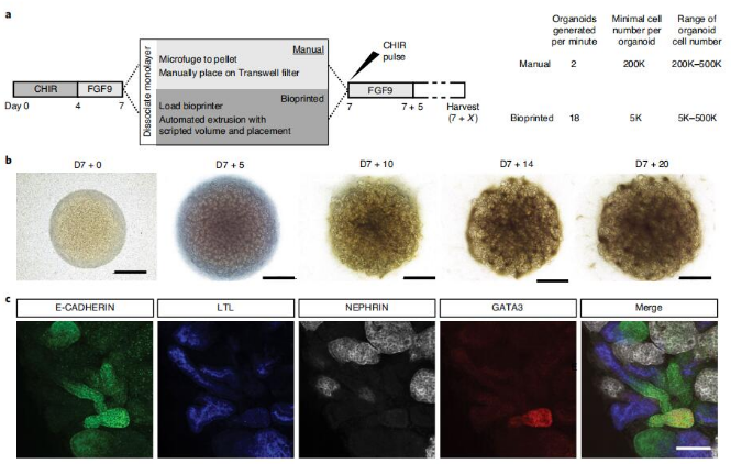 論文'Cellular extrusion bioprinting improves kidney organoid reproducibility and conformation,' Nature Materials. DOI: 10.1038/s41563-020-00853-9.