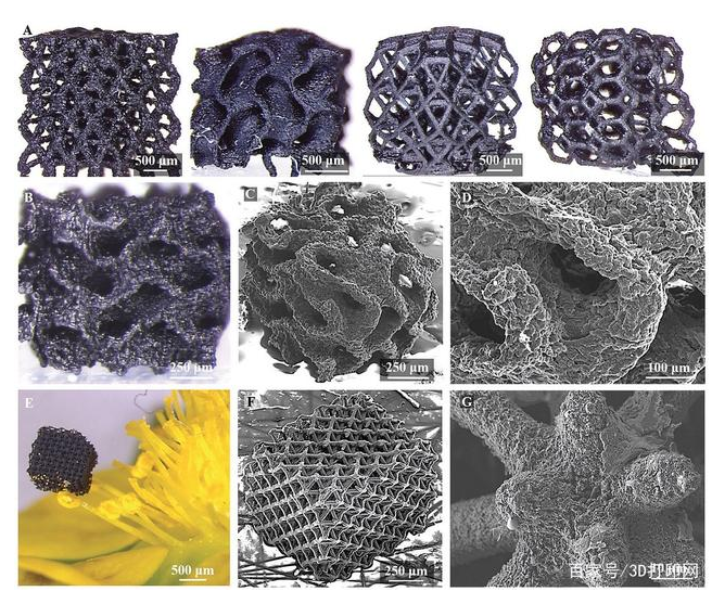 比較不同材料的掃描電子顯微鏡(SEM)圖像。 (a)原始的氧化石墨烯支架,(b-e)氧化石墨烯-二氧化硅結構。圖片來自《歐洲陶瓷學會雜志》。結果和潛在應用 研究人員發現,與未經處理的氧化石墨烯支架相比,3D打印的氧化石墨烯-二氧化硅結構保持高度多孔性,而其抗壓強度提高了250-800%。混合結構也保持“顯著的電導率”,但是主要的增強體現在結構的親水性上。觀察到腳手架的超細二氧化硅基覆蓋物對結構的潤濕特性有重要影響。與未經處理的氧化石墨烯支架相比,該結構變得完全親水,而其吸水能力提高了十倍。氧化石墨烯-二氧化硅結構的增強性能表明它們可以適合用作吸收劑,污染物去除,氣體感應,蓄熱或在光催化水分解應用中使用。