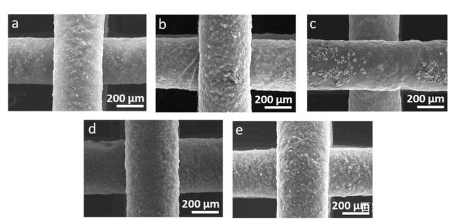 首先,研究人員使用由氧化石墨烯納米片制備的水性油墨,3-D Inks LLC的三軸機器人自動鑄造系統和RoboCAD軟件對3D打印的氧化石墨烯支架進行了3D打印。通過直徑為410μm的針將支架打印到由16層均勻分布的桿組成的長方體中,這些桿相對于相鄰層成直角放置。