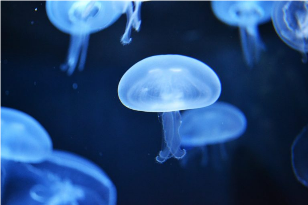 一群月亮水母。科學家發現他們的致動器以類似于月水母的肌肉的方式收縮。圖片來自Kiara Sztankovics,Unsplash。