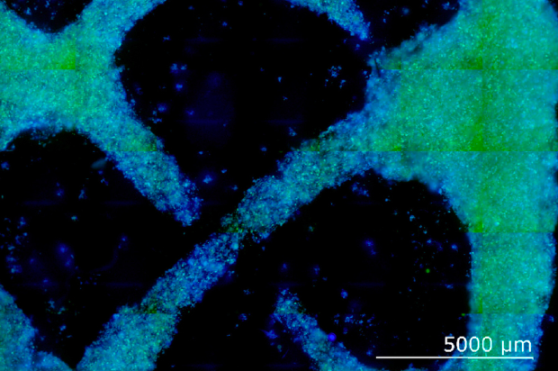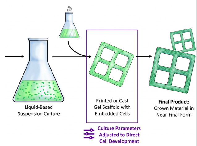 研究人員的3D生物打印方法使他們能夠生產具有70%以上細胞活力的生物基結構。圖片來自《清潔生產雜志》。