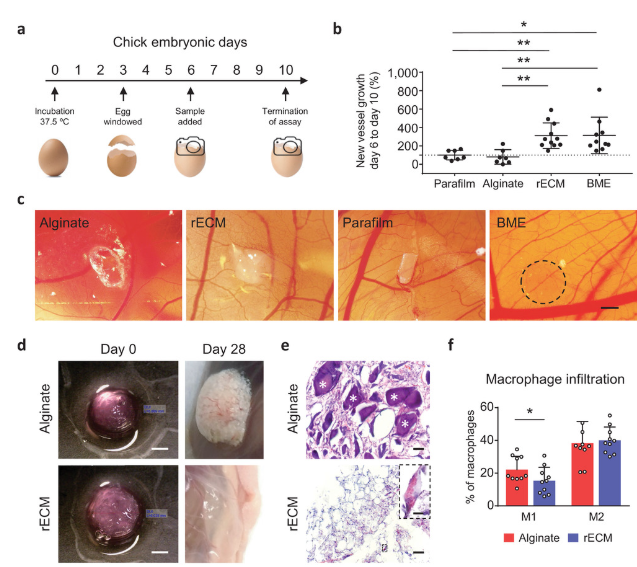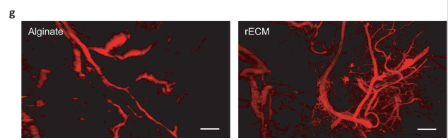 rECM水凝膠的生物相容性和血管生成潛力。圖片來自隆德大學。