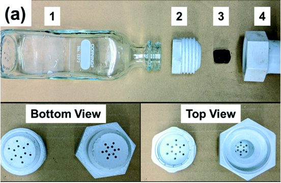 科學(xué)家將他們的氣凝膠3D打印到瓶蓋水過濾系統(tǒng)中(如圖)。圖片來自《環(huán)境科學(xué)納米》雜志。