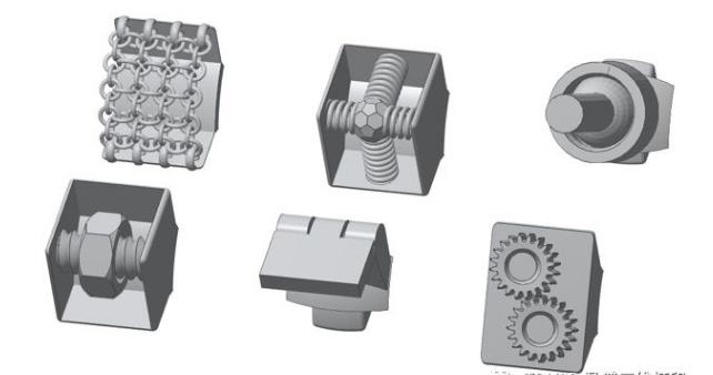 △鎖鏈、彈簧、球頭、螺紋、鉸鏈、齒輪6種裝配結構一體打印