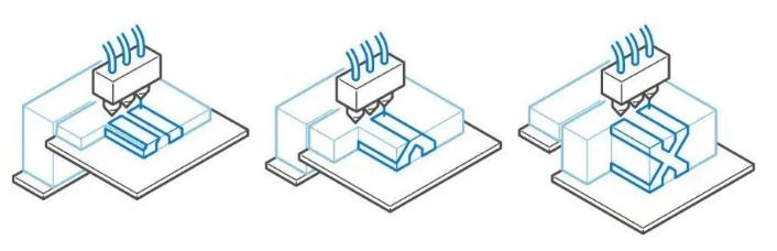 ●材料擠出的子類型:熔融沉積建模 (FDM)、建筑 3D 打印、微型 3D 打印、生物 3D 打印