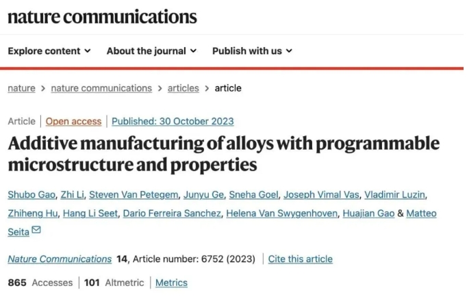 △這一研究成果已在《自然通訊》雜志上發表,題目為“具有可編程微觀結構和性能的合金增材制造”
