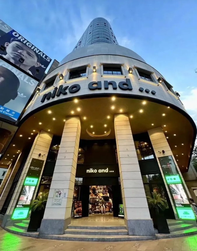 niko and ... 上海淮海路店于2019年開店,總面積3500平方米,是該品牌在中國大陸首店和全球面積最大的旗艦店。作為一個時尚生活方式品牌,niko and …擁有服飾、雜貨、家居、旅行、音樂、玩具等9大品類,它將“style editorial(風格編輯)”作為品牌定位,為消費者提供穿搭、餐飲、物品等全方位的生活創意提案。